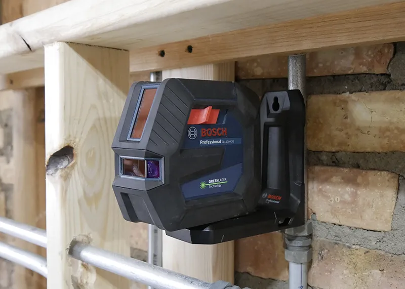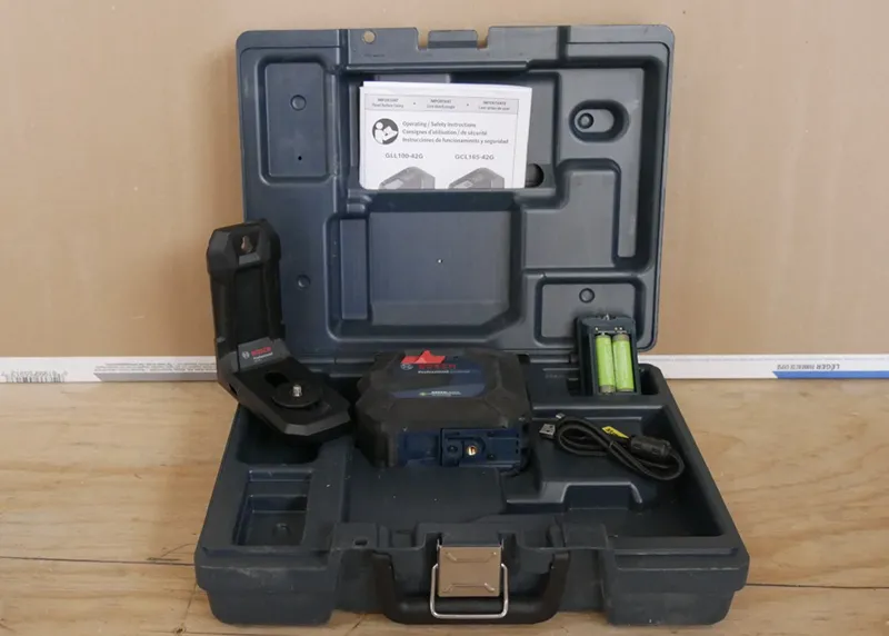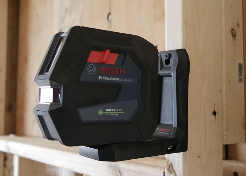 The Bosch 100 ft. Cross-Line Laser Level Kit is designed for professionals, meaning it prioritizes what trade professionals need most in a laser level, and it’s built to withstand jobsite conditions and workday demands. These are the features that stand out the most to us when considering the priorities of trade professionals.