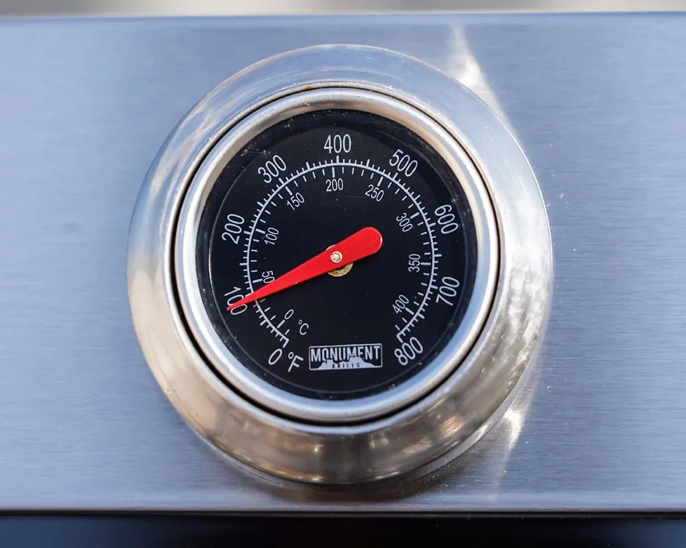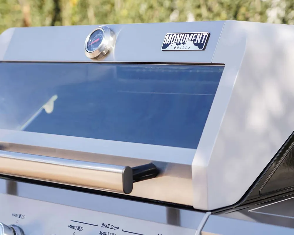 Located just below the Clearview® Lid is the temperature gauge. The built-in thermometer lets you know the exact temperature of your grill without temping it yourself. We like the Monument Grills Mesa 415BZ Stainless Steel Gas Grill has just enough convenience features to let you relax while you grill, but doesn’t “dummy proof” the experience so you’re still encouraged to be hands-on.