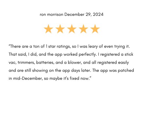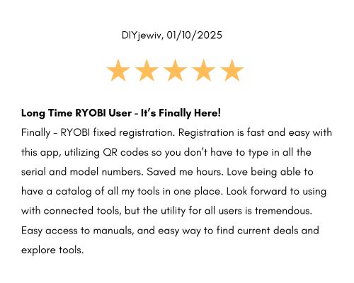 However, it appears RYOBI took in the feedback and has updated the app since its initial launch. Now the RYOBI app has earned a number of positive 5-star reviews from RYOBI users a few weeks after the launch: