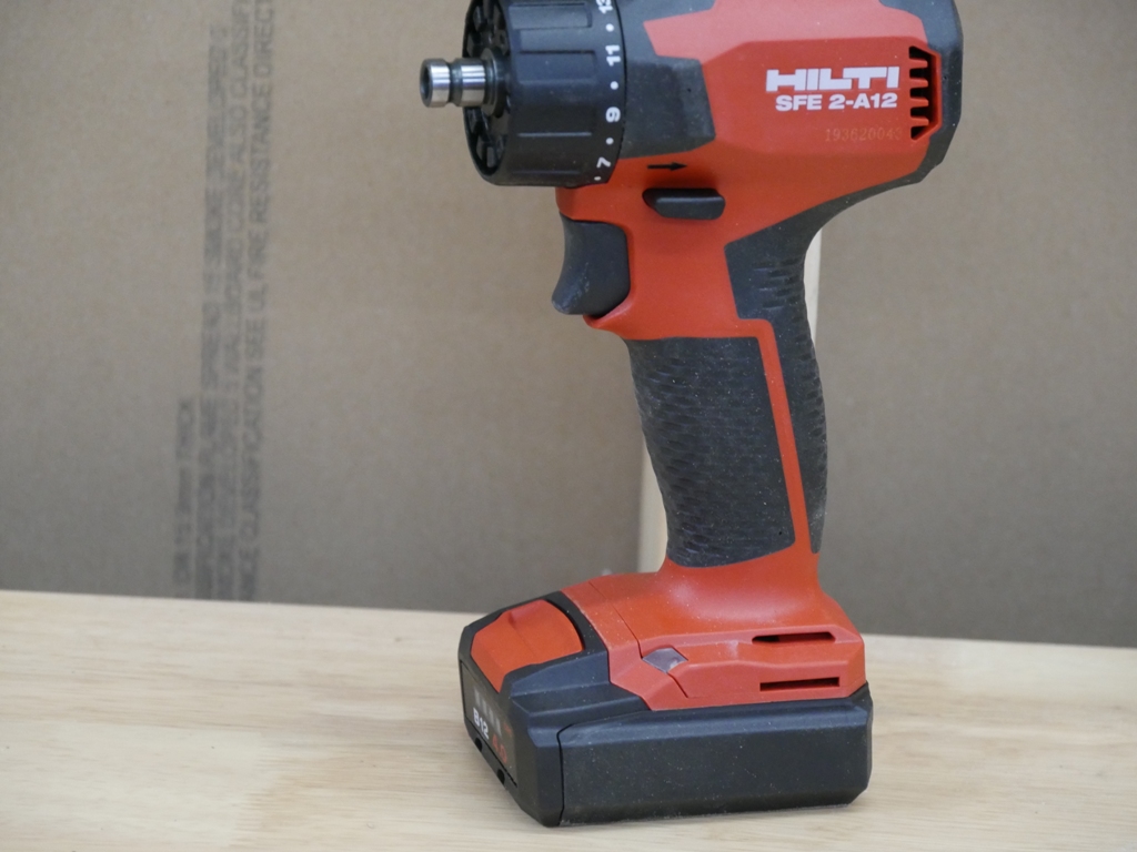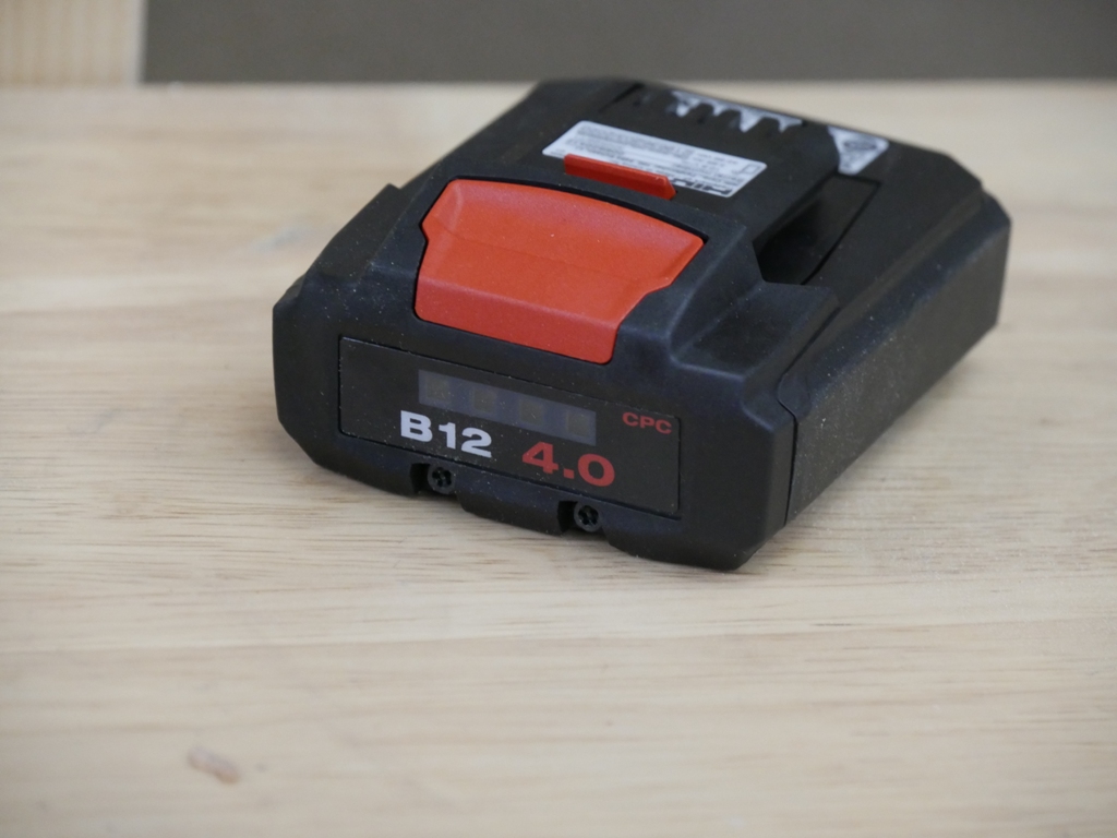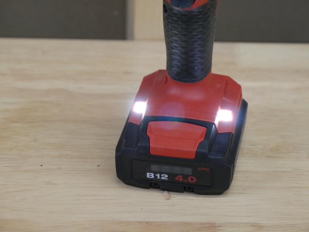 The tool is powered by a Hilti 12V 4Ah battery. One cool feature is the battery has a fuel status gauge which you don’t see on a lot of 12V batteries.