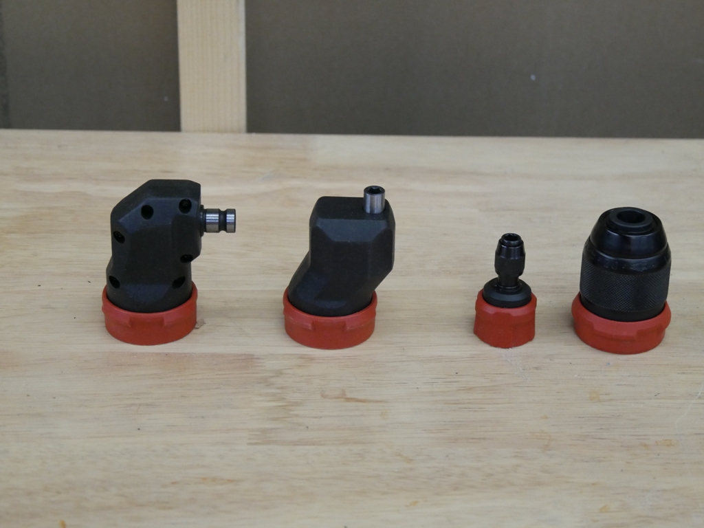 With the tool, you get a 1/2″ keyless chuck, a hex bit holder, a right angle drill driver, and an offset chuck.