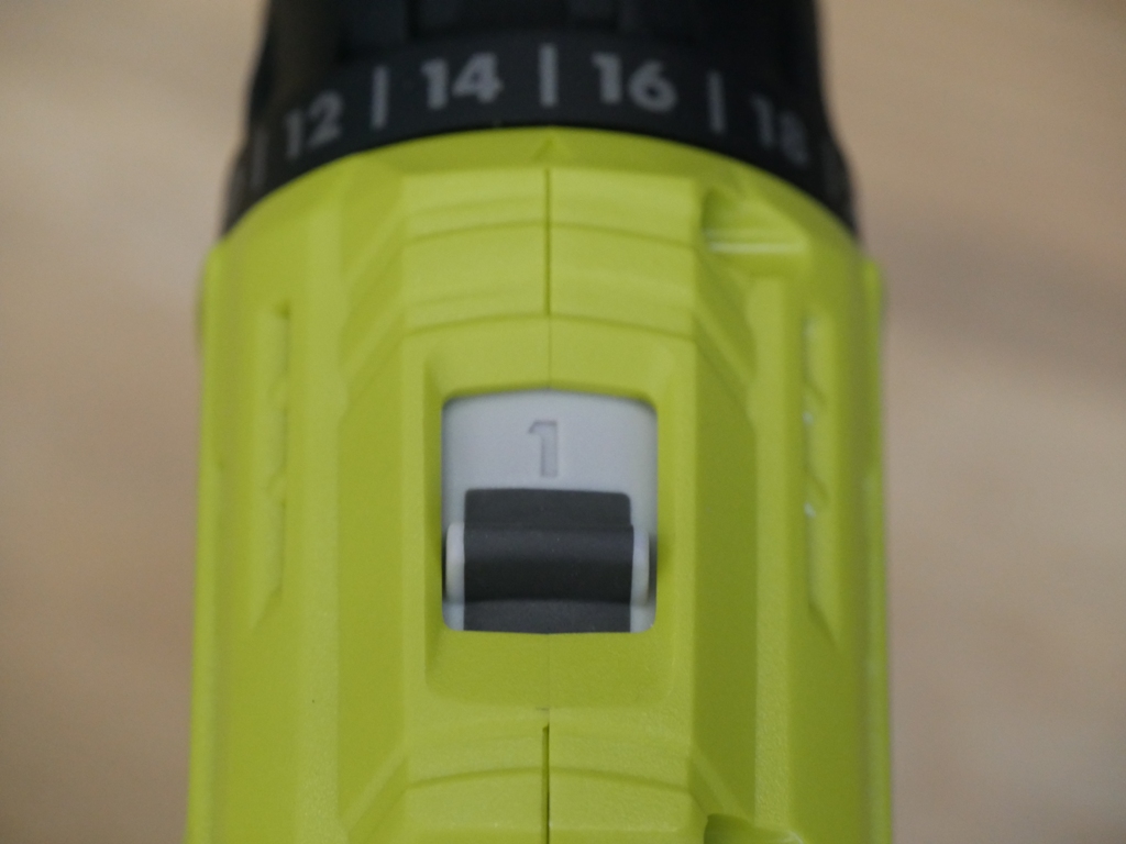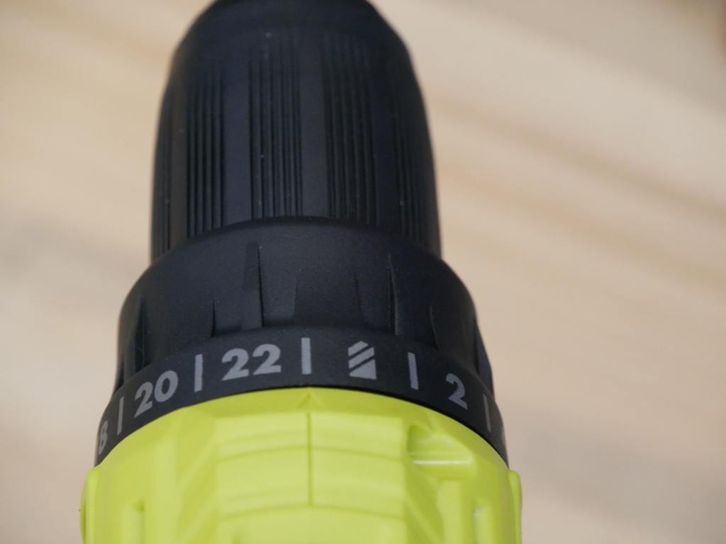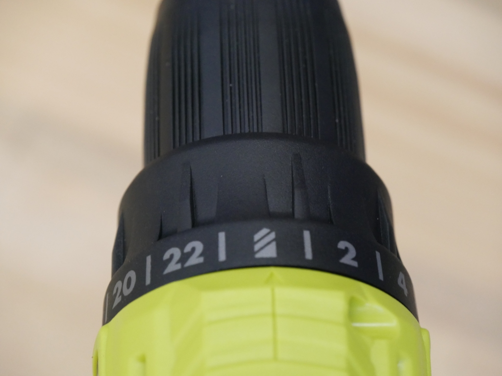 On the front of the drill, you can adjust the clutch settings. The clutch settings can be adjusted to 24 different positions.